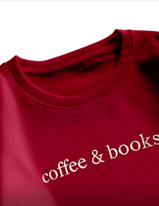 Books and Coffee Jumper/Sweatshirt- Burgundy